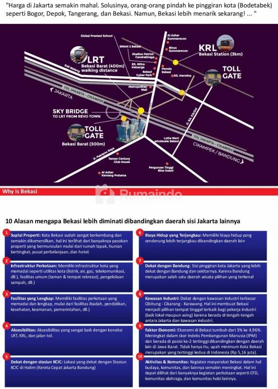 Pakuwon Residences Bekas hadir di jantung Kota Bekasi sebagai hunian ideal dengan akses langsung ke Pakuwon Mall Bekasi. Lokasi yang strategis hanya selangkah dari stasiun LRT Bekasi Barat dan gerbang Tol Bekasi Barat menjadikan Pakuwon Residences Bekasi.