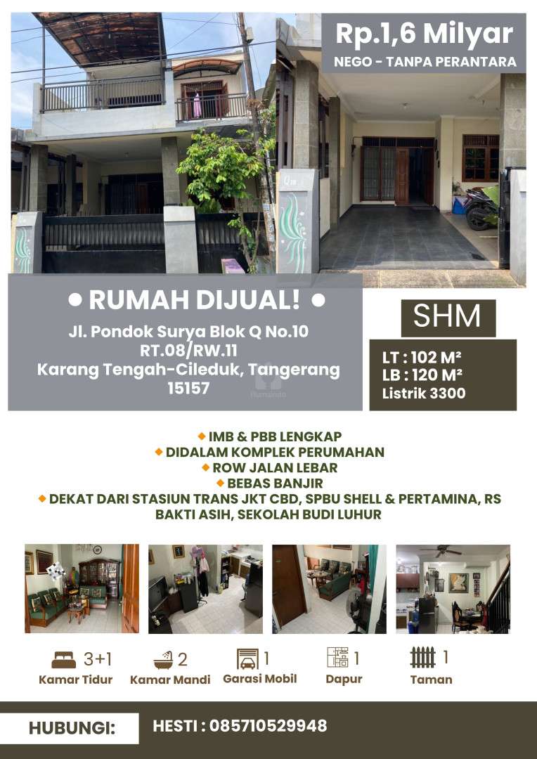 Jl. Pondok Surya Blok Q No.10 RT.08/RW.11 Karang Tengah-Cileduk, Tangerang 15157