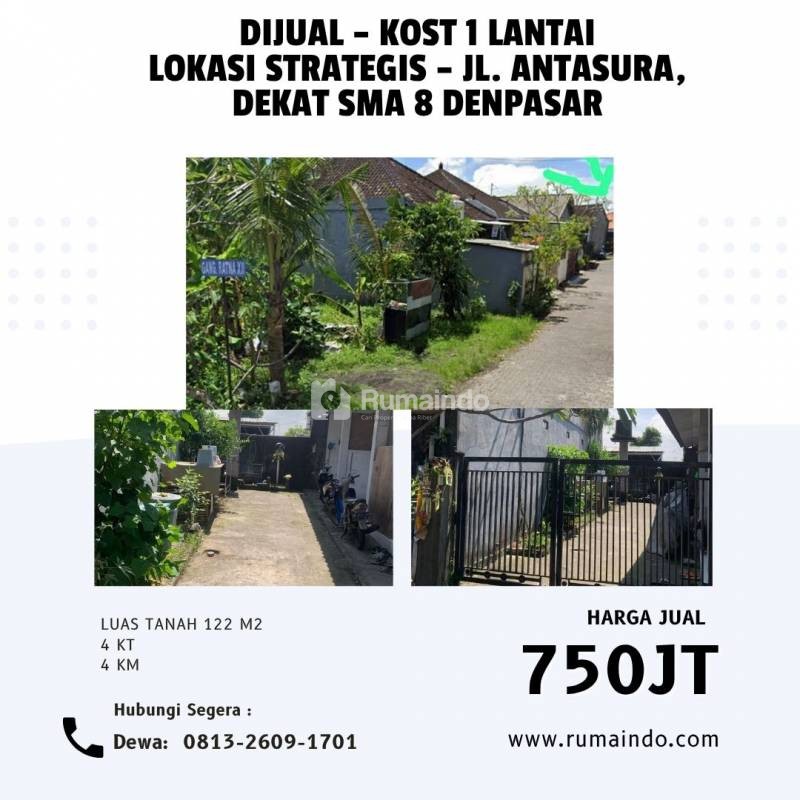 DIJUAL – KOST 1 LANTAI Lokasi Strategis – Jl. Antasura, Dekat SMA 8 Denpasar