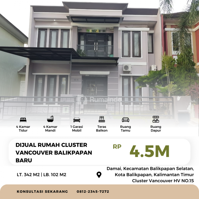 Alamat : Damai, Kecamatan Balikpapan Selatan, Kota Balikpapan, Kalimantan Timur Cluster Vancouver HV NO.15
