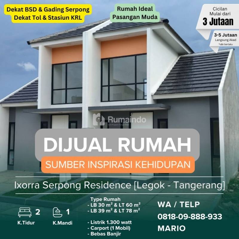 Dijual Rumah Ideal untuk Pasangan Muda di Ixorra Serpong Residence, Legok - Tangerang. Harga mulai dari 559 Juta. Angsuran 3 Jutaan.