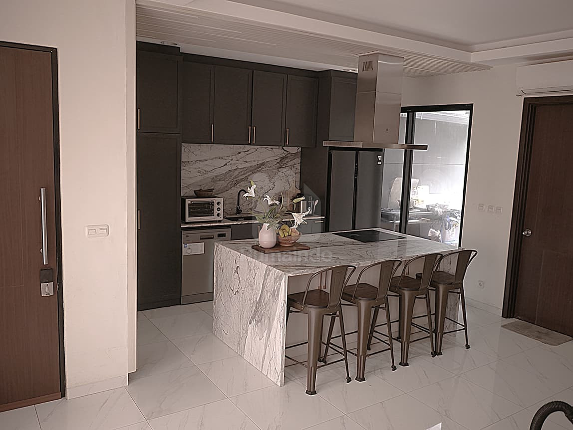 Semi-Furnished Premium: Termasuk instalasi permanen seperti kitchen set, marmer Statuario, range hood, kanopi, dan peningkatan lantai—siap huni tanpa renovasi tambahan.