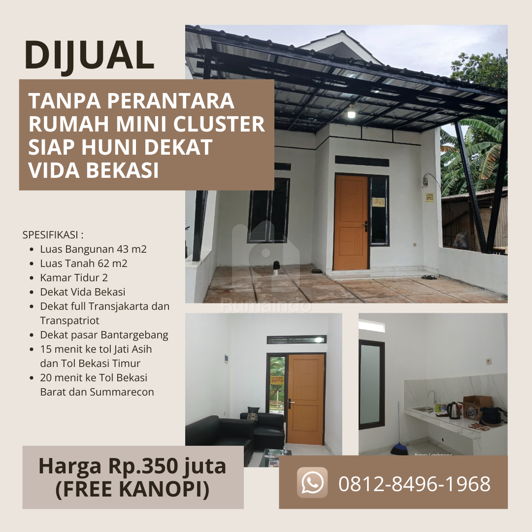 DIJUAL TANPA PERANTARA RUMAH MINI CLUSTER SIAP HUNI DEKAT VIDA BEKASI