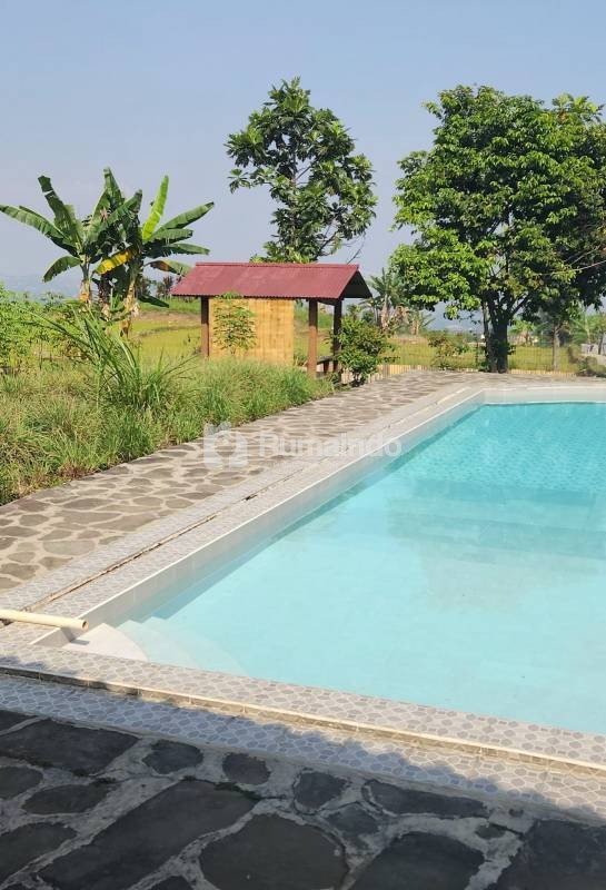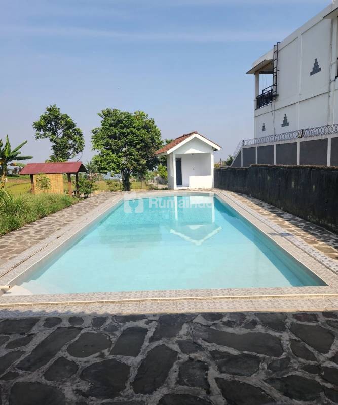 3 kamar tidur,4 kamar mandi,ruang tamu, dapur, teras, saung dan sawah,kolam renang,parkir mobil.