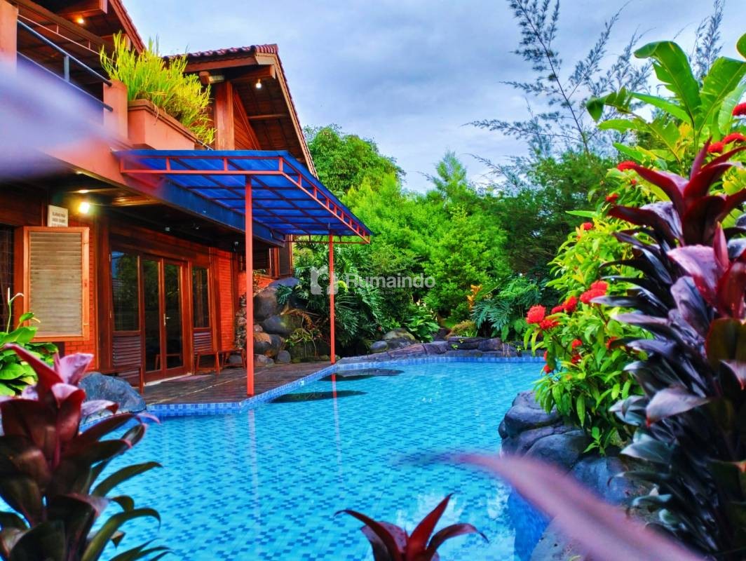 Villa nuansa kayu di puncak dengan kapasitas 50 orang