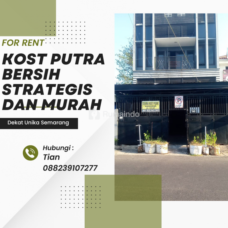 Kost murah dan bersih putra dekat kampus Unika Soegijapranata Semarang, Kampus Untag, UNDIP Semarang. Kost berada di jalan raya jadi sampai malam tetap ramai dan aman. Harga dapat dibandingkan dengan kost sekitar