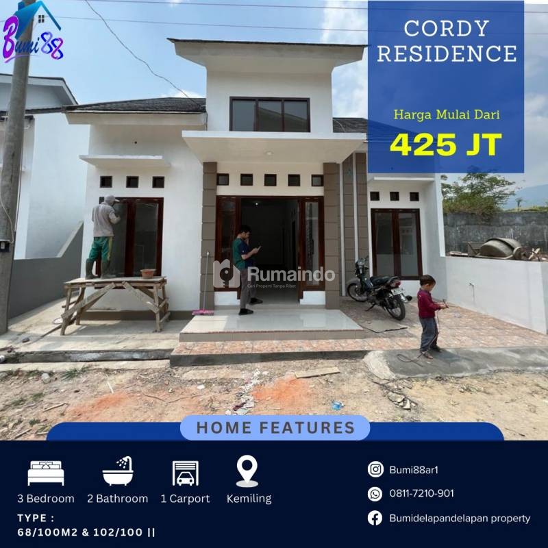 Deskripsi: Cluster baru CORDY RESIDENCE unit TERBATAS di Kemiling, Bandar Lampung. Desain modern, kokoh, dan tepercaya. Lingkungan nyaman, bersih, serta aman. Lokasi dekat dengan jalan raya Sumber Agung Kemiling Bandar Lampung.
