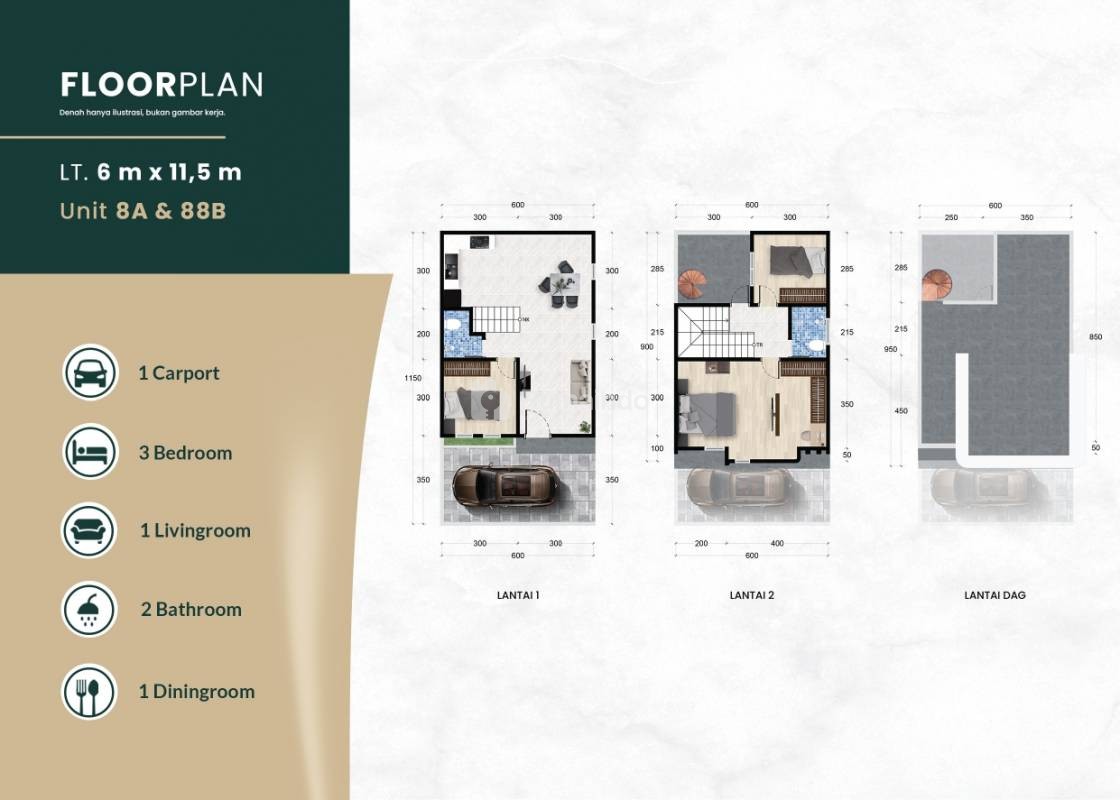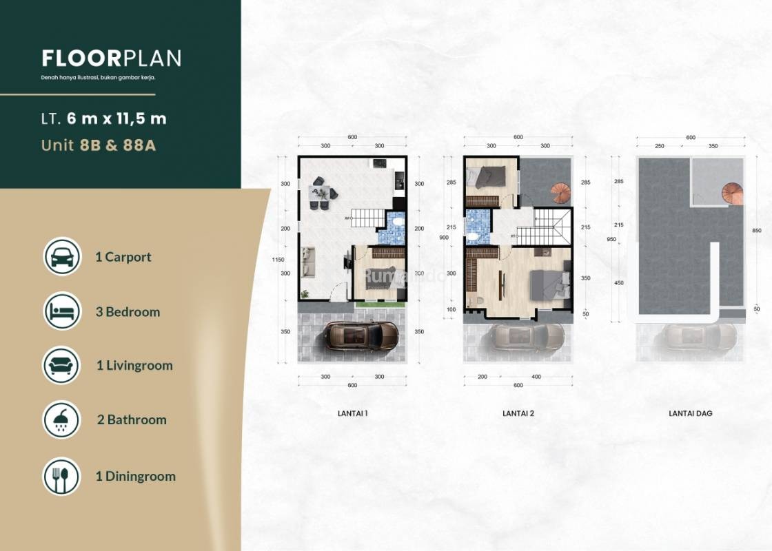 Luas Tanah : 6 x 11m