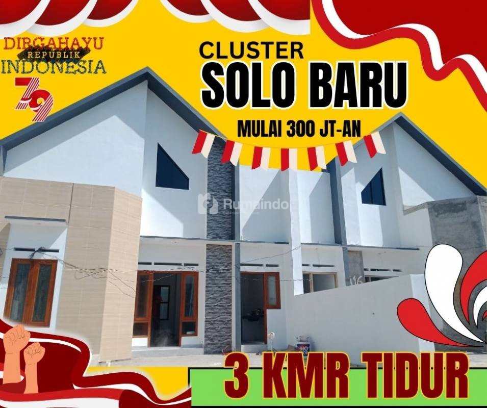 RUMAH CLUSTER 3 KAMAR TIDUR PALING DEKAT KE SOLO BARU