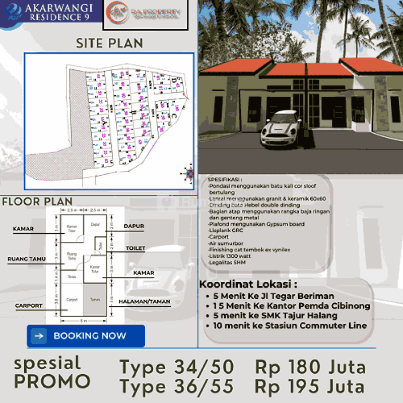 • Type 34/50 carport Rp180 juta