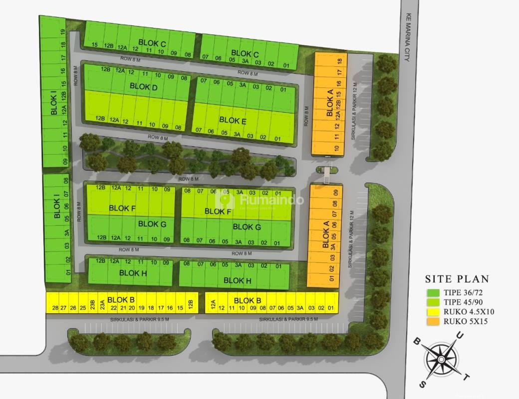 Posisi Perumahan di pinggir jalan Marina dengan type rumah sebagai berikut: