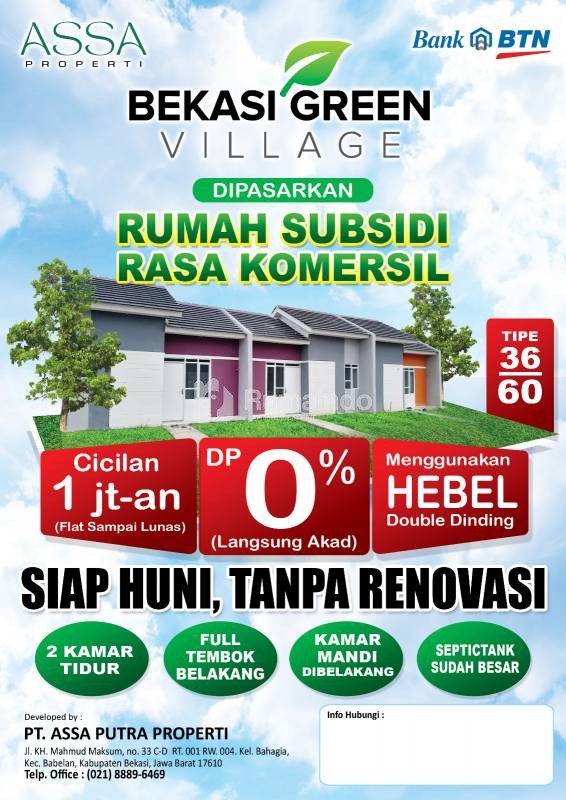 rumah SUBSIDI TANPA DP di babelan bekasi