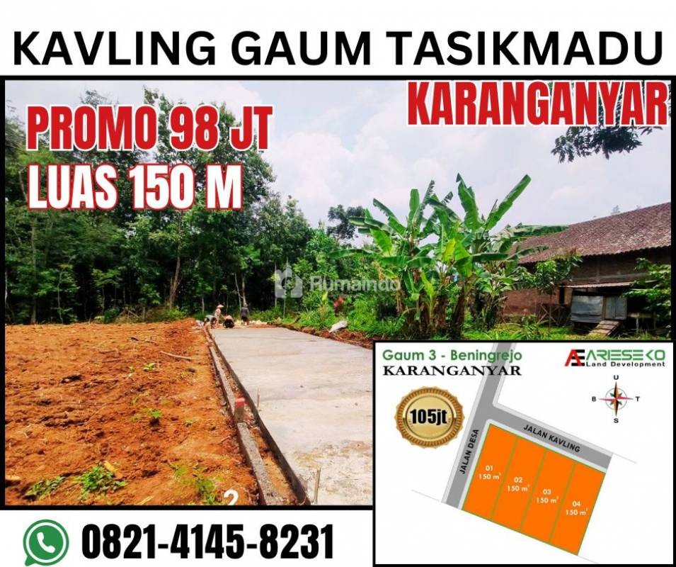 DIJUAL TANAH KAVLING MURAH SETRATEGIS DI GAUM TASIKMADU KARANGANYAR