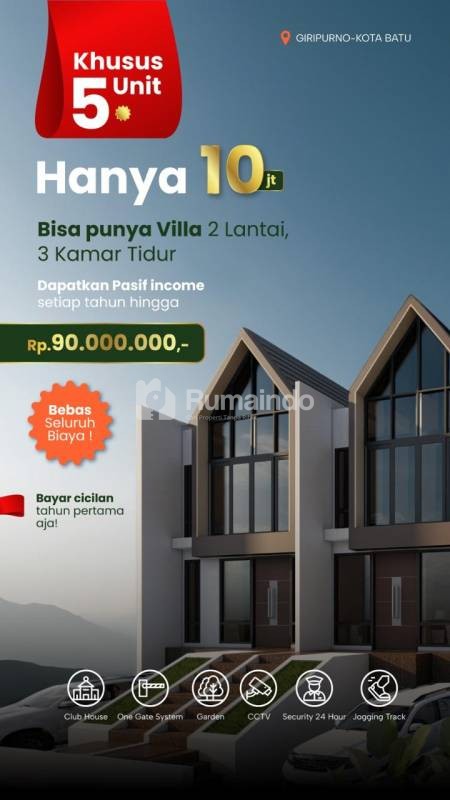 MODAL 10 JUTA saja anda bisa mendapatkan rumah villa asri dengan pemandangan terkeren di Kota Batu, sudah FREE SEMUA BIAYA. GAURI AKRATAMA menyajikan villa mewah nan elegan dengan konsep yang sangat kekinian. Berada di lingkungan yang asri dan sejuk dengan pemandangan 360 derajat pegunungan di kota batu. GAURI AKRATAMA juga menyediakan FREE training sewa kelola dengan passive income tinggi tiap bulannya.