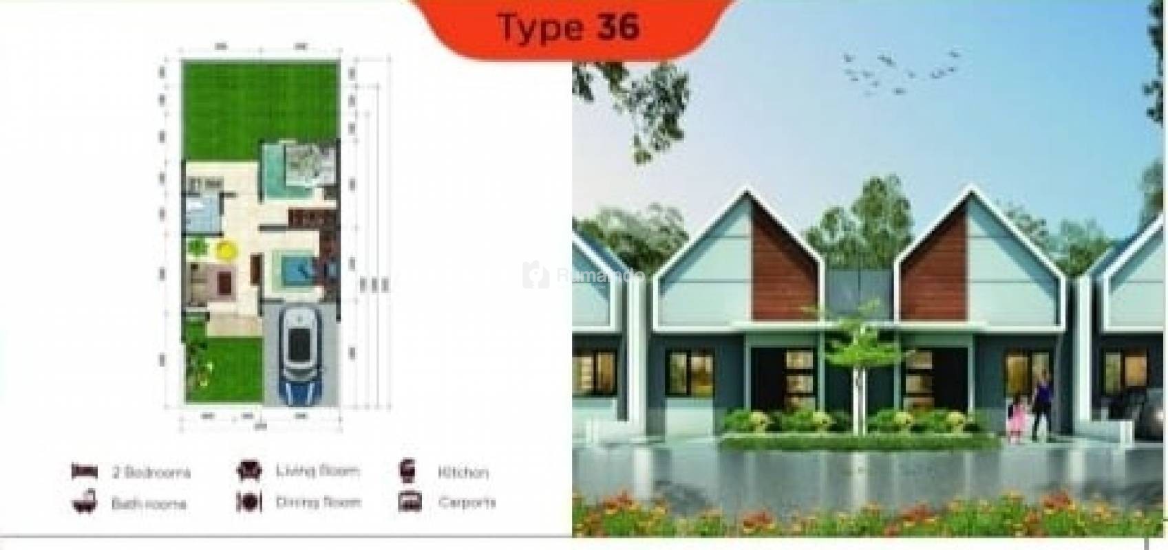 “THE RIVER SIDE” 1 Lantai, 2 BR 1 BT, Type 36/78 M2