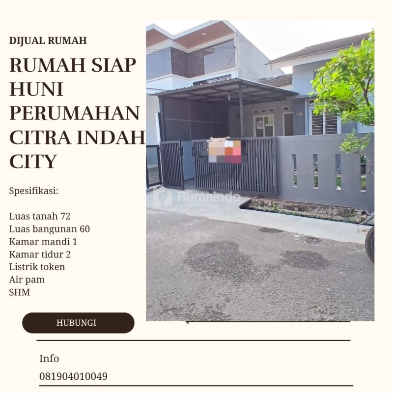 Yuk miliki rumah di CITRA INDAH di cluster kota nuansa suasana Alam timur cibubur