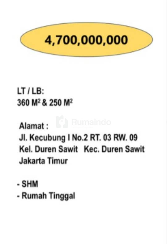 Di Jual Rumah Tinggal di Duren Sawit Jakarta Timur