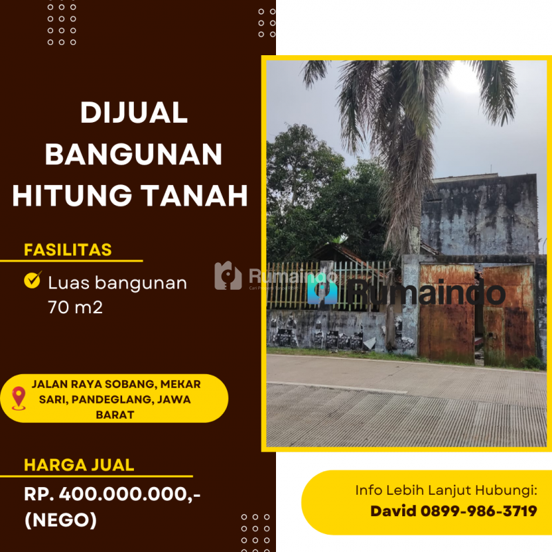 Dijual Bangunan hitung Tanah Di Pandeglang Jawa Barat