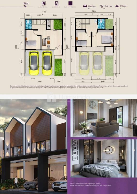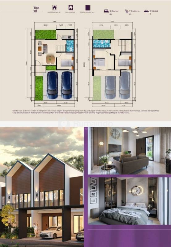 - Kamar Tidur: 3 (2lt), 2 (1lt)