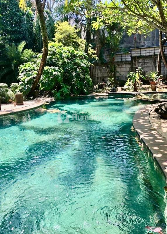 Di tengah2nya kolam renang disertai taman dengan tumbuhan yg teduh dan tamanan import. halaman luas