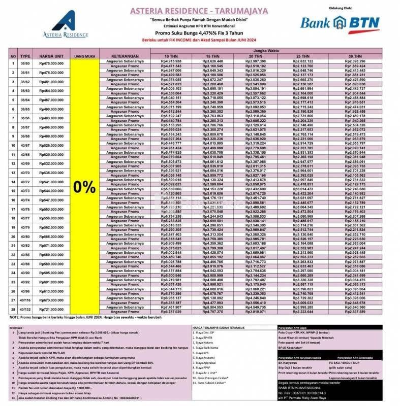 Dijual Rumah Tanpa DP Asteria Residence Lokasi Strategis, Tarumajaya - Bekasi