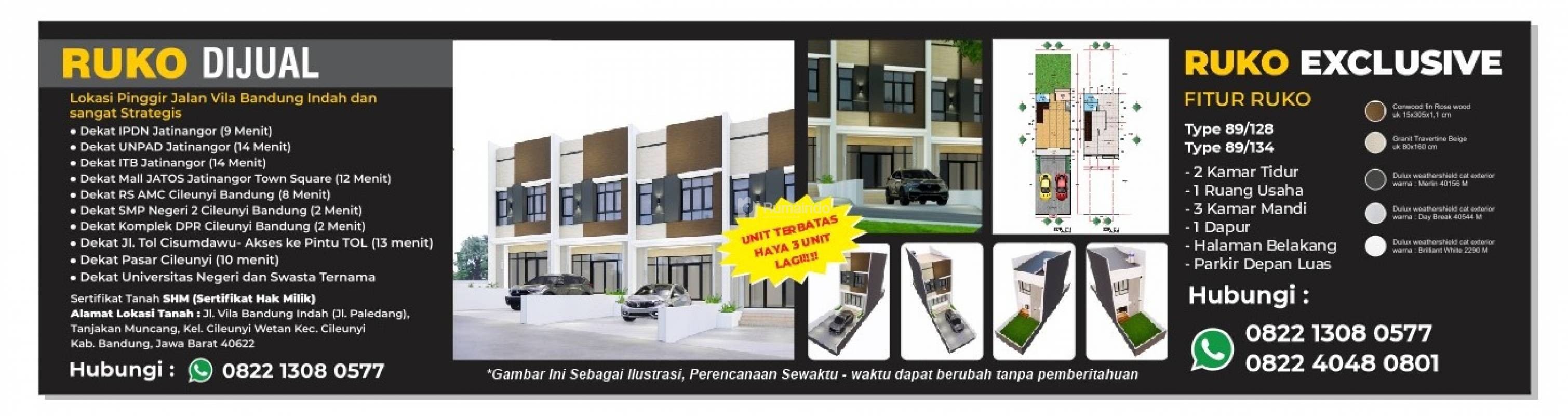 Jual Ruko Strategis Cileunyi,Tempat Usaha Rumah Toko berlokasi tidak jauh dari sarana pendidikan dan akses ke tol.