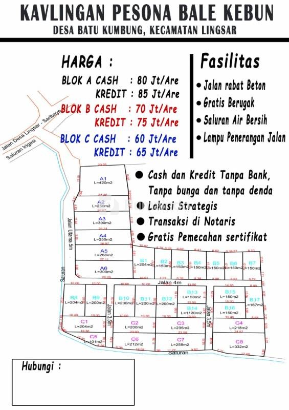Untuk luasan block kavlingan luasnya 1 are, 2 are dan seterusnya