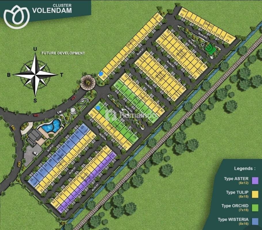 Total 944 unit rumah dan tahap satu terdiri dari Cluster Volendam.Total unit rumah tahap satu 171 unit dengan 4 Tipe rumah