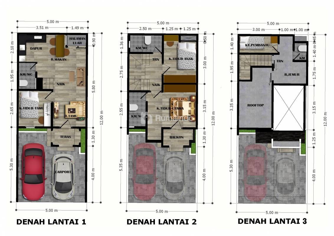 -tipe 100/60 (rooftop) Luas Tanah 60 m2 & Luas Bangunan 100 M2 + Roof Top