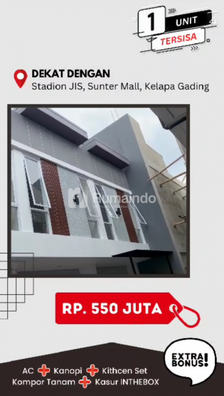 Rumah cantik 2 lntai siap huni lokasi dekat dengan stadion JIS jakarta utara
