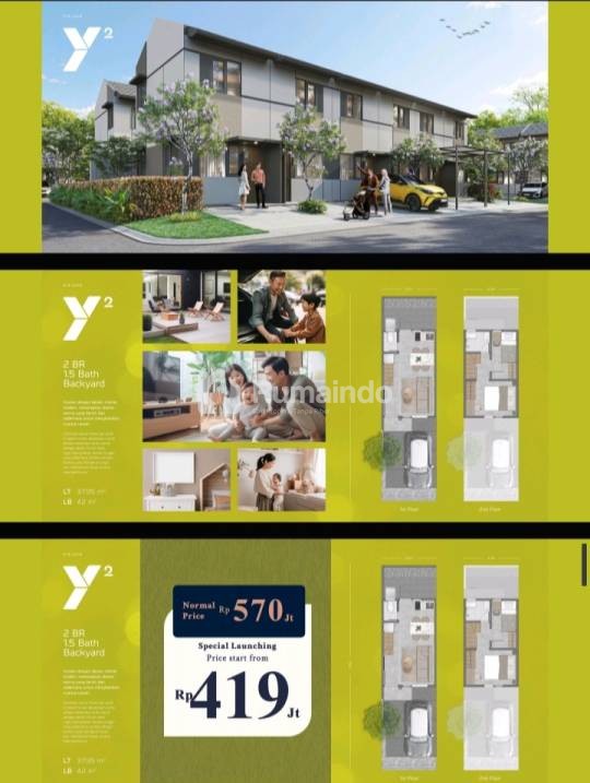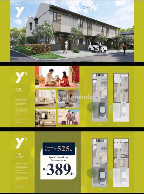 Tipe Y1: 2 BR, 1.5 bath, LT 31.35 (3.3 x 9.5) | LB 40.7