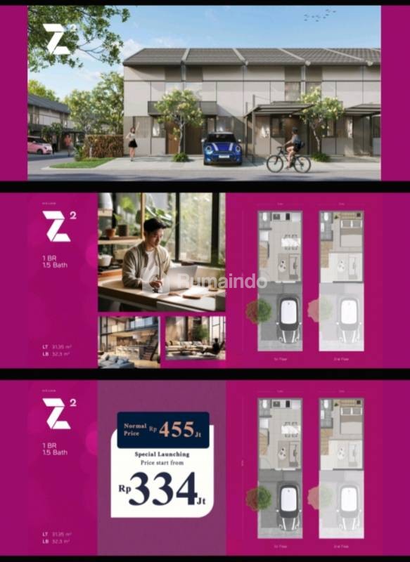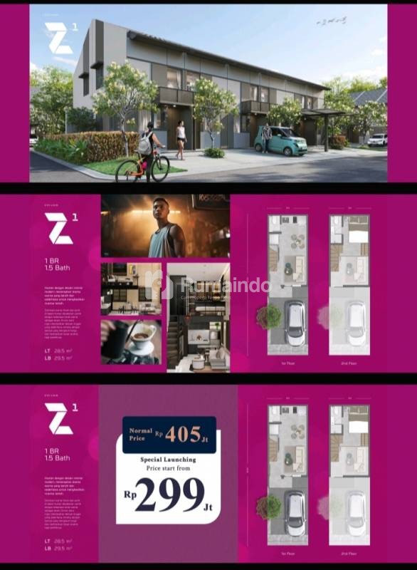 Tipe Z1: 1BR 1.5Bath LT 28.5 (3 x 9.5 ) | LB 29.5