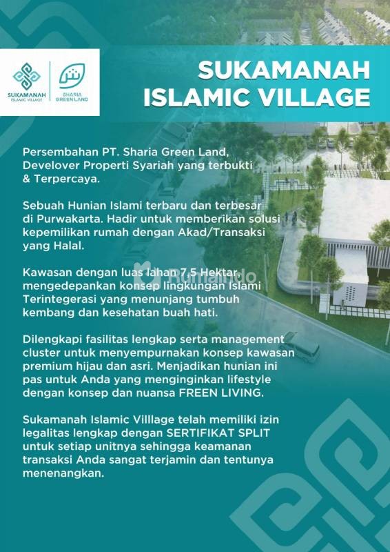 Sukamanah Islamic Village dibangun dengan konsep Green Living. Posisinya berada di kawasan asri Purwakarta yang masih sejuk dan nyaman dengan luas lahan 7.5 Ha.